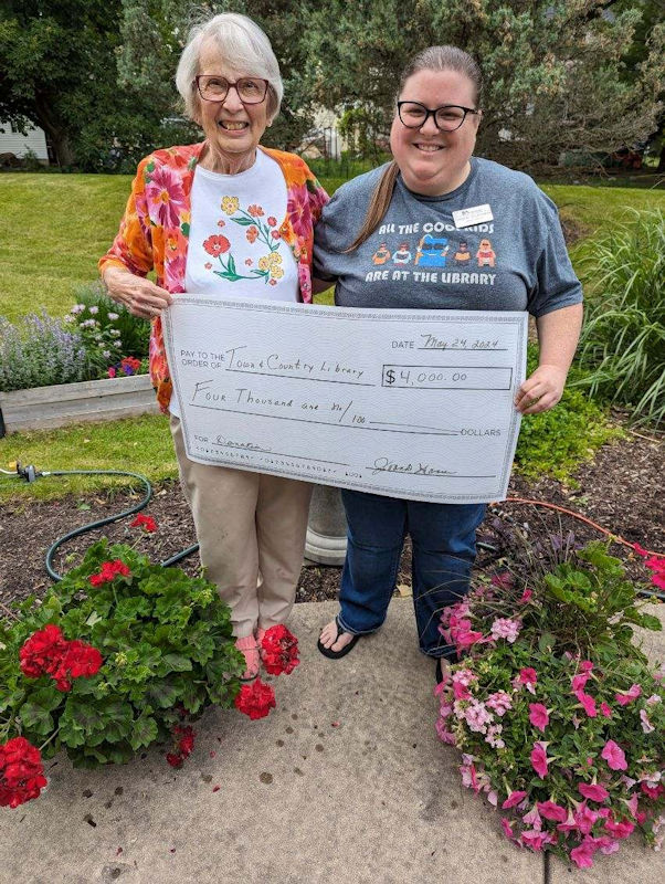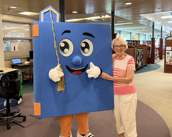 The mascot, was named "Page Turner" in a contest sponsored by the Friends.